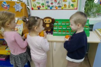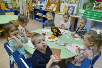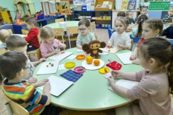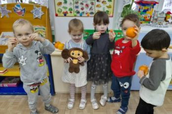 На прошлой неделе к ребятам из группы "Гномики" в гости приходил любитель апельсинов и мандаринов - весёлый Чебурашка. Ребята из младшей группы "Гномики" с удовольствием поиграли с ним, а потом учились лепить для пушистого друга угощения.