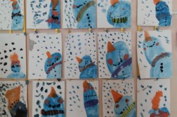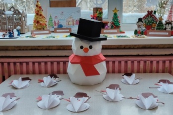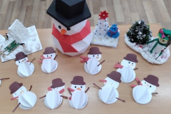 В подарок дети приготовили весёлых друзей - маленьких снеговичков. Дружная компания получилась!