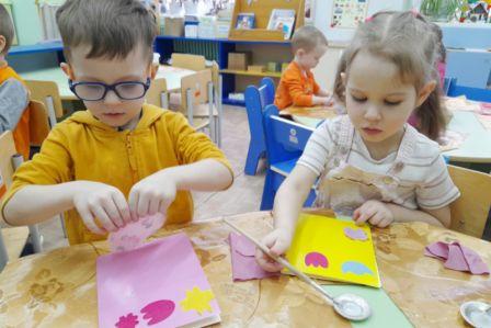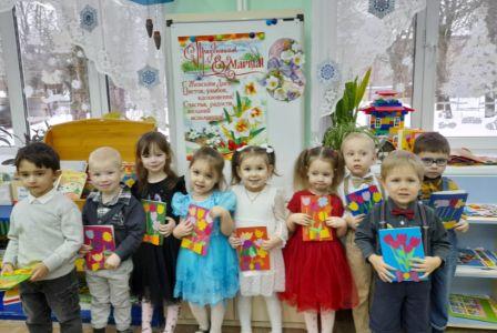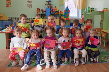 В преддверии праздника 8 марта, ребята из младшей группы "Гномики" сделали для своих мам красивую открытку. С огромным удовольствием дети наклеивали цветочки, создавая красивый букет. Букеты получились у всех замечательные, ведь каждый ребёнок старался сделать для своей мамы самый лучший подарок!