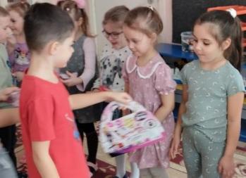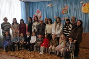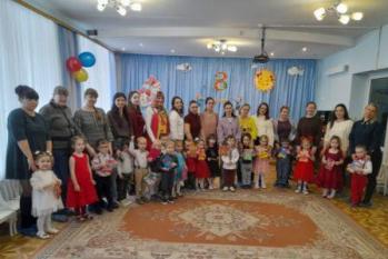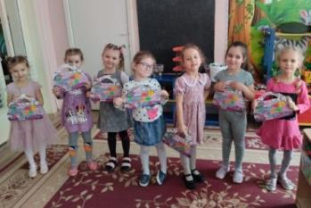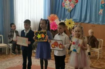 Дети старше-подготовительной группы "Сказка" поздравляли своих любимых песнями, танцами, стихами. А в конце подарили сделанный своими руками цветок.