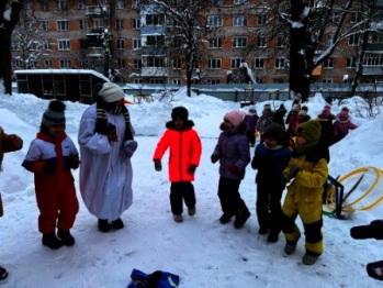 18 января отмечал свой праздник зимний герой - Снеговик. Он пришел к детям группы "Знатоки" в пятницу на прогулку, чтобы с ними поиграть в веселые игры "Попади в цель", "Забей гол в ворота", "Кто дальше бросит" и другие, а потом все дружно катались на ватрушках.