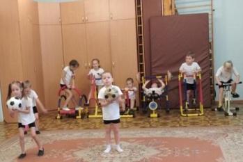 Регулярные занятия физкультурой, проводящиеся в нашем ДОУ, помогают ребятам вырасти здоровыми, сильными и крепкими. Дети с удовольствием выполняют ОРУ, занимаются на тренажёрах, играют с мячом.