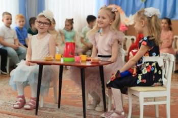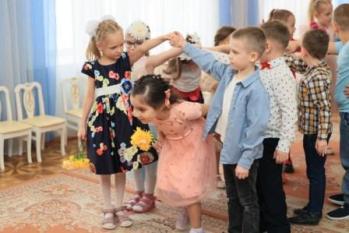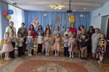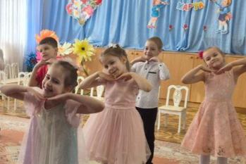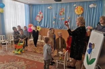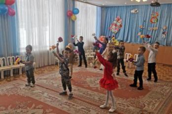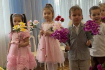 Дети старше-подготовительной группы "Сказка" поздравляли своих любимых песнями, танцами, стихами. А в конце подарили сделанный своими руками цветок.