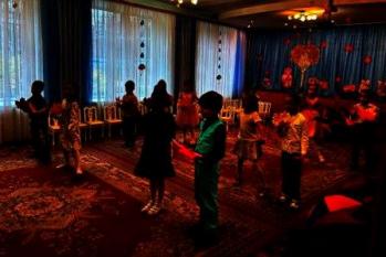 Дети с удовольствием прочитали ей стихи, исполнили песни и красивые танцы: с разноцветными листочками и с зонтиками. Не побоялись непогоды, надели галоши и посоревновались в эстафете.