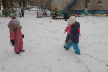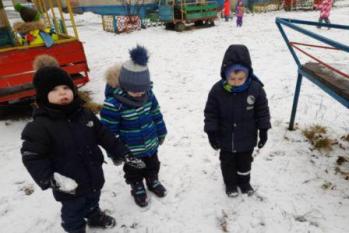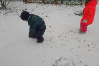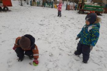 Ребята из младшей группы "Гномики" на прогулке наблюдали за следами на снегу. Определили, какие птицы прилетают на участок и оставляют свои следы.