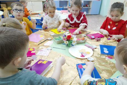 В преддверии праздника 8 марта, ребята из младшей группы "Гномики" сделали для своих мам красивую открытку. С огромным удовольствием дети наклеивали цветочки, создавая красивый букет. Букеты получились у всех замечательные, ведь каждый ребёнок старался сделать для своей мамы самый лучший подарок!