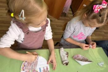 С большим удовольствием дети сделали из бумаги игрушку "Синичка-невеличка".