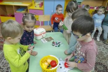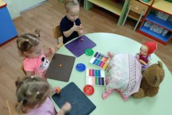 В ясельной группе "Петушок" прошло занятие по лепке "Пирожки для Маши". Ребятки послушали сказку "Маша и медведь" и выполнили просьбу Маши, помочь ей налепить пирожков, чтобы перехитрить медведя, и побыстрее вернуться к бабушке с дедушкой.