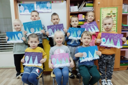 Вот и пришла зима! Она укрыла природу покрывалом чистого белого снега. Ребята сразу же вдохновились на творчество и самовыражение. На своих рисунках маленькие художники изобразили заснеженные пейзажи, деревья в снежном убранстве. Какая красота получилась!