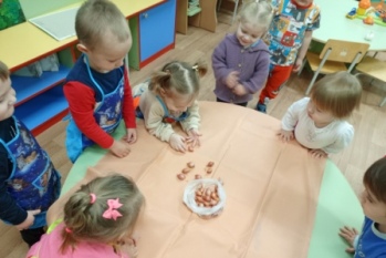 В младшей группе "Гномики" прошло занятие по основам науки и естествознания под названием "Подарки для медвежонка".